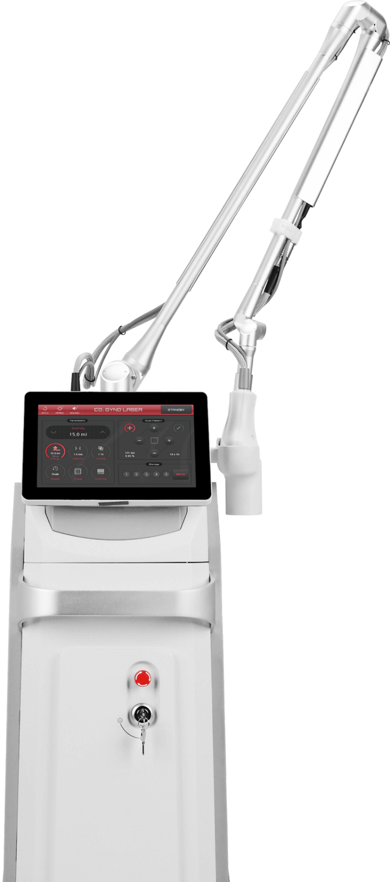 The GynoLaser CO₂ fractional laser offers fast, safe and highly effective minimal invasive procedures for a broad variety of treatments for women. The GynoLaser has a 90˚ reflecting mirror, which provides vertical delivery of the CO₂ laser beam (8 x 8mm) onto the wall of the vagina for the remodeling of vaginal connective tissue via neoformation of collagen and elastic fibers, without causing any damage to surrounding tissue.
